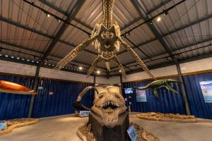 São Paulo. O museu expõe réplicas de gigantes marinhos que habitaram os nossos oceanos, e esqueletos de animais da atualidade.