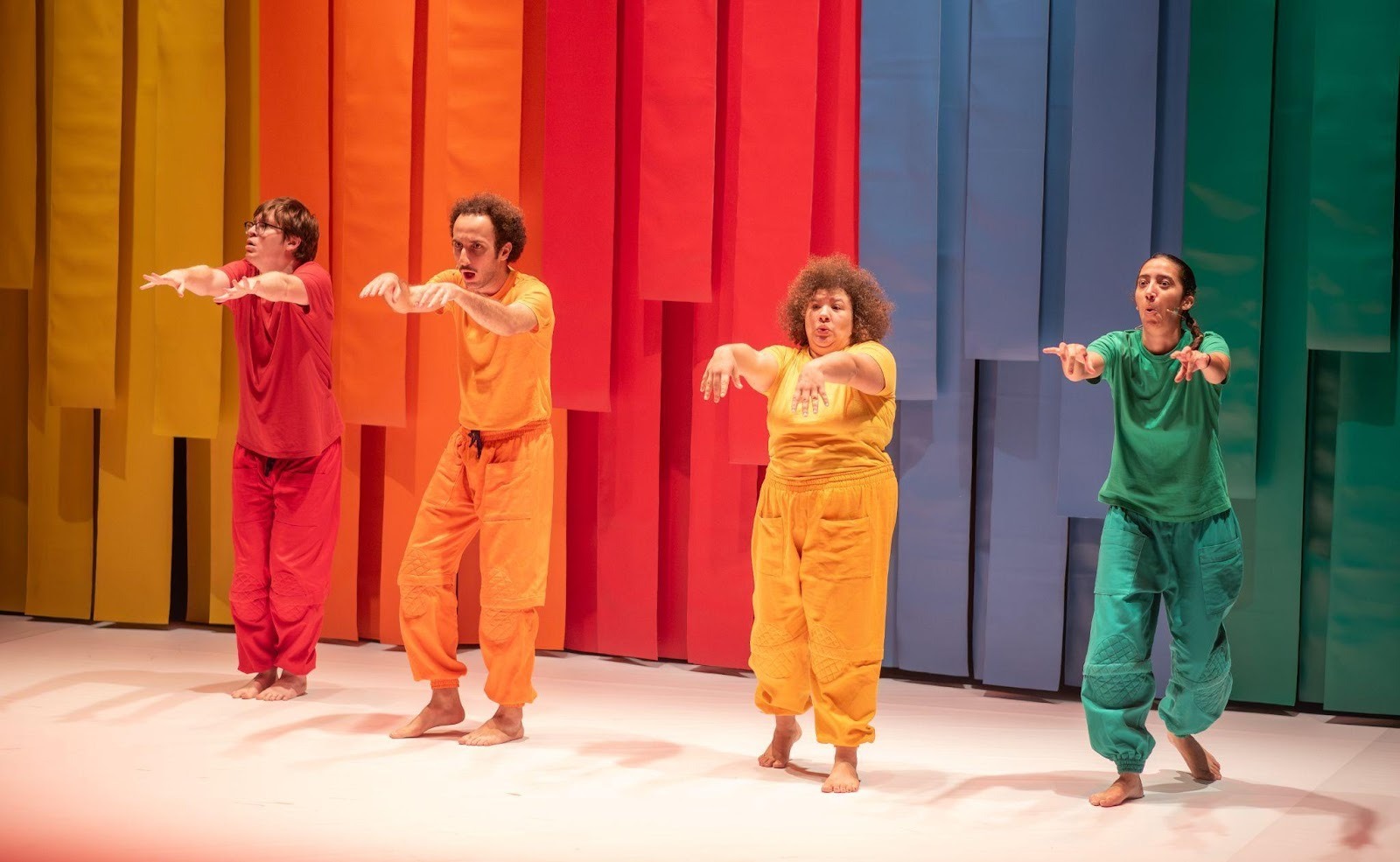 Voltado à primeira infância, Abraça investiga temas psicomotores e sensoriais, explorando estímulos táteis, sonoros e afetivos.